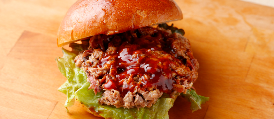 豚の肩の肉を塊のまま8時間低温でスモークしたお肉を、特製バンズでサンドしました!