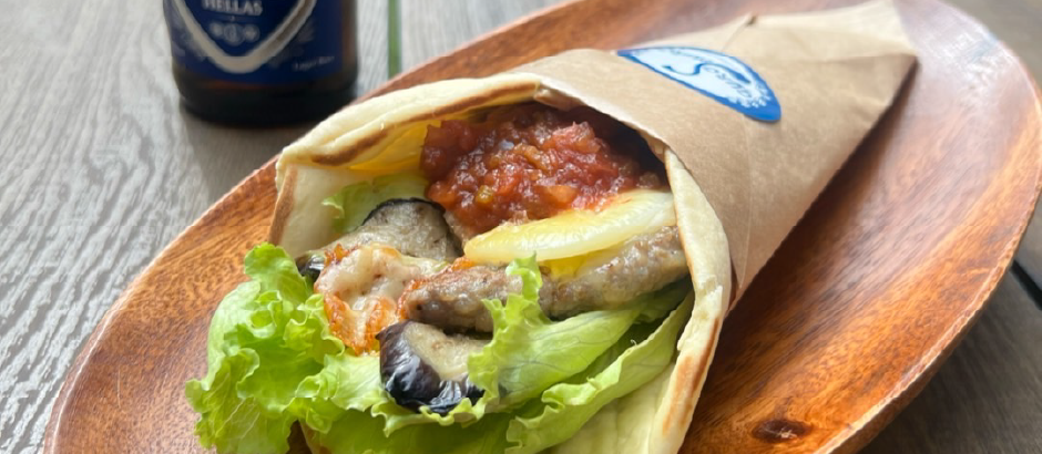ハーブの効いたミートパティは噛むたびに美味しさが口の中に広がり、ザジキソース(ヨーグルトソース)は程よい酸味で後味スッキリさせまた食べたくなること間違いなし!! 一度お試しください。